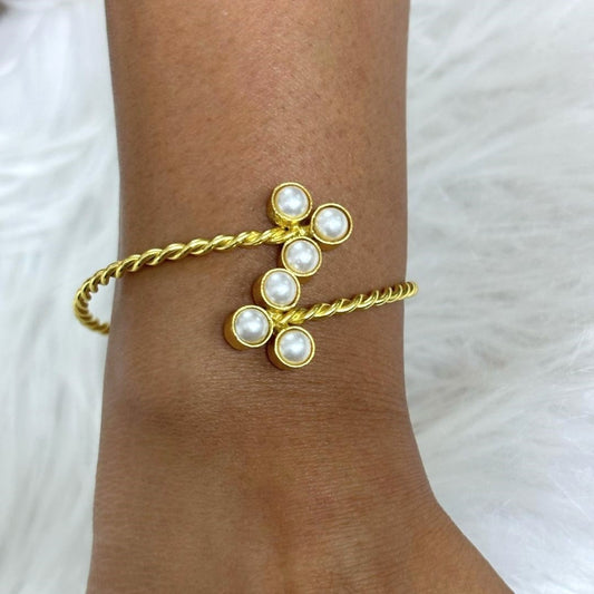 BDiva 18k Gold Plated Twisted Gold Pearl Bangle Classic Elegance with a Modern Twist