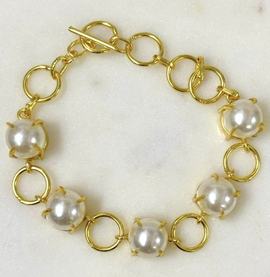 BDiva 18k Gold Plated Golden Pearl Charm Bracelet with a Touch of Classic Sophistication