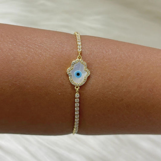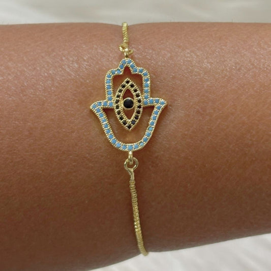 Bdiva 18k Gold Plated Adjustable Evil Eye Hamsa Bracelet with Cubic Zirconia