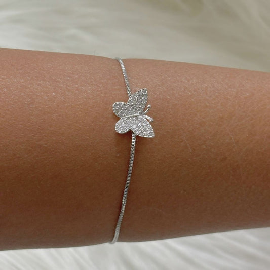 Bdiva Adjustable Rhodium-Plated Butterfly Bracelet with Cubic Zirconia