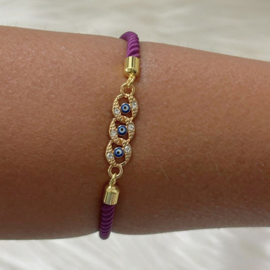 Bdiva Handmade 18k Gold-Plated Evil Eye Adjustable Bracelet