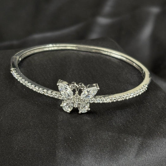 Silver Butterfly Bliss Rhodium-Plated Cubic Zirconia Bangle – Elegance in Motion