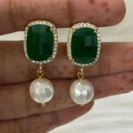 BDiva 18k Gold Plated Emerald Radiance Statement Earrings with a Fusion of Luxe and Elegance