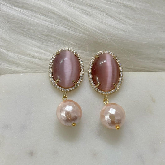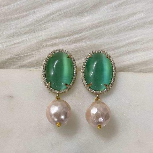 BDiva 18k Gold Plated Oval Stone Radiance Statement Earrings with a Fusion of Luxe and Elegance