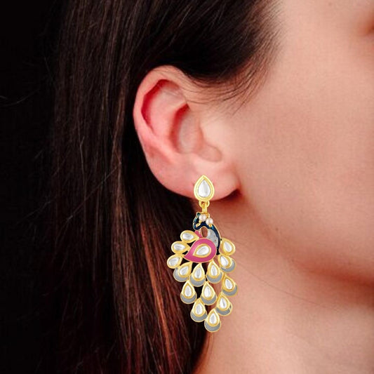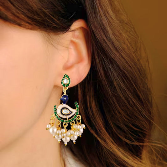 BDiva 18k Gold Plated Regal Peacock Pearl Drop Earrings with a Blend of Tradition and Modern Grace