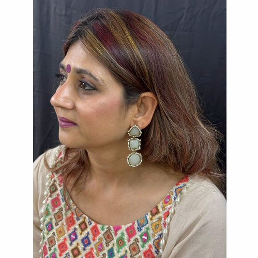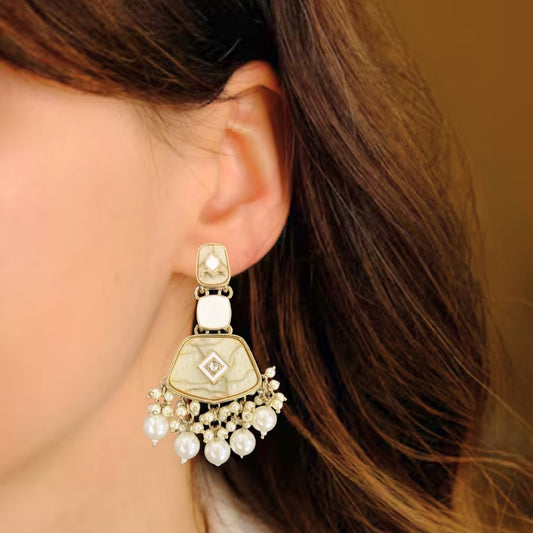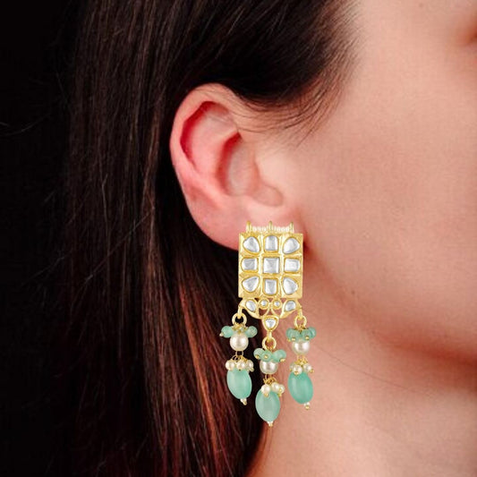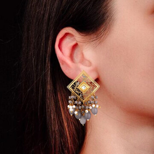 BDiva 18k Gold Plated Royal Square Pearl & Grey Beaded Dangle Earrings with a Fusion of Tradition and Modern Glamour