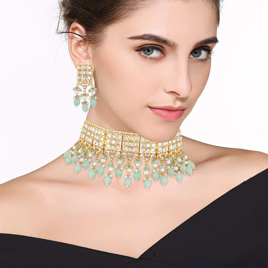 18K Gold Plated Regal Kundan Pearl Choker Set