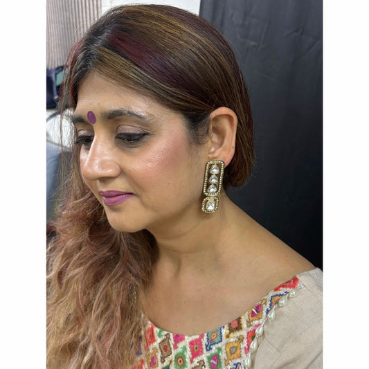 High-Quality Gold Plated Kundan Earrings with Enamel & White Semi-Cultured Pearls