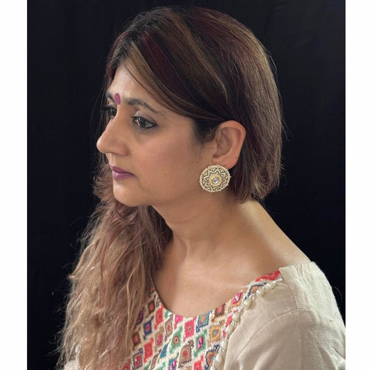 BDiva Antique Kundan Embellished Round Stud 18k Gold Plated Earrings