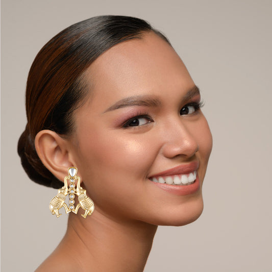 Bdiva 18K Gold Plated Kundan Elephant Earrings.