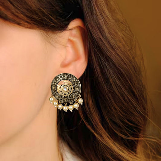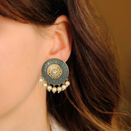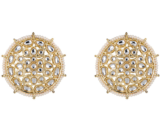 Bdiva 18K Gold Plated Intricated Design Kundan Stud Earrings.