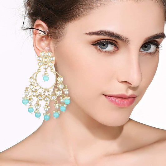 Bdiva 18K Gold Plated Turquiose Chandbali Earrings with Semi Cultured Pearls