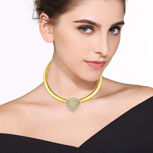 BDiva 18k Gold Plated Regal Mint Kundan Medallion Choker