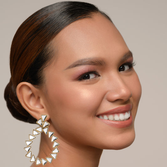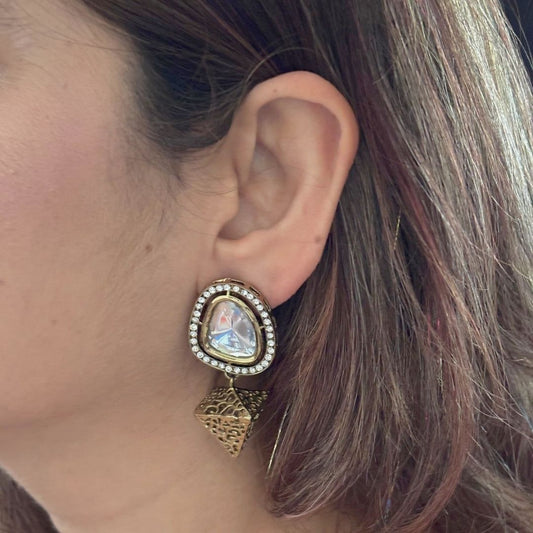Bdiva 18K Gold Plated Cone Dangler Kundan Earrings with Western Flair.