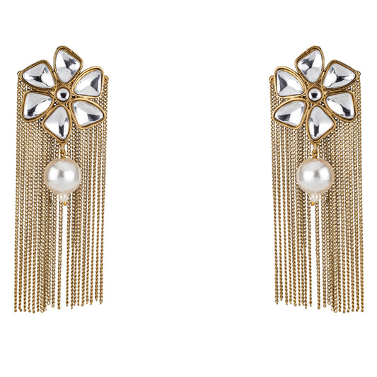 Bdiva 18K Gold Plated Floral Kundan Drop Pearl Earrings with Western Flair.