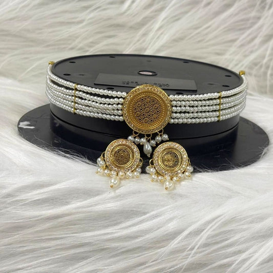 Gold Plated Kundan & Pearl Choker Set