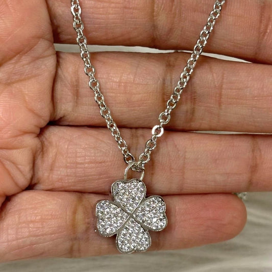 High Quality Rhodium Plated Cubic Zirconia Floral Pendant